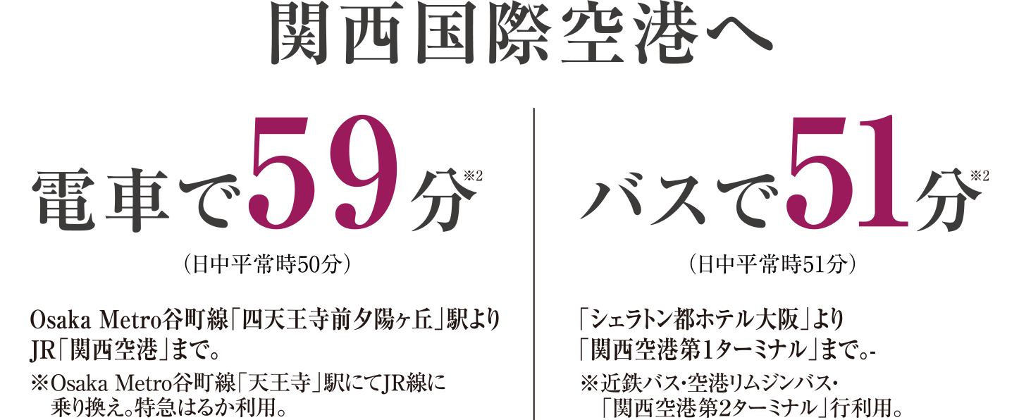 3駅5路線が利用でき、天王寺、なんば、梅田にダイレクトアクセス。
